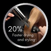 Curl, wave or straighten with heated plates and an optional immediate cool air system to set the style.