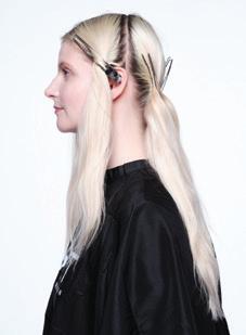 Using fine back-to-back sliced foil application, working from the bottom up at the back, the roots are lightened using Pro-Tech Bleach 35g + Cream Developer 6% 70g up to the scalp. The Pro-Tech Bleach was remixed for each quarter of the head. This is then repeated on the sides.