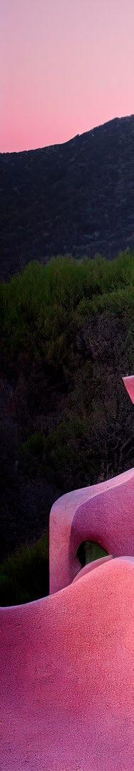 Waar ze de inspiratie haalt? Giménez spreekt van primitief futurisme. “Ik vind dat een architect er goed aan doet om bij het ontwerp van een leefruimte inspiratie op te doen uit de natuur. De eerste mensen zochten onderdak in grotten, met reden.” In welke wereld we dan terechtkomen? Een met tactiele structuren, organische vormen, ludieke raampartijen en een weelderige natuur. Bergen en bloemen, roze en beige tinten, dramatisch verlichte wandelgangen en zithoeken waar geen rechte lijn te bespeuren is.