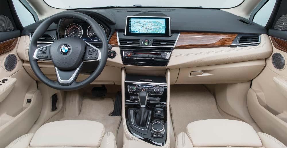 Omdat BMW zich goed bewust is van de behoefte aan veel ruimte, flexibiliteit en functionaliteit in het compacte luxesegment, heeft het de 2 Reeks Active Tourer voorzien van een geraffineerde voorwielaandrijving die het uitstekende rijplezier kan bieden dat van de modellen van het merk wordt verwacht. Samen met de lange wielbasis en de verhoogde daklijn zorgt deze configuratie ervoor dat de binnenruimte maximaal wordt benut, waardoor een ongekend gevoel van ruimte ontstaat. De bestuurder en de voorpassagier hebben een veel hogere zitpositie dan in een berline, wat een controlerend uitzicht rondom oplevert en het in- en uitstappen vergemakkelijkt. De overvloed van opbergmogelijkheden en de optie van een neerklapbare rugleuning van de passagierszetel zijn maar twee voorbeelden van de indrukwekkende flexibiliteit van het interieur en de doordachte lay-out. Ook een groot panoramadak dat het interieur in het licht laat baden, is als optie verkrijgbaar. De merkidentiteit met haar verbluffende dynamische eigenschappen is ook in de BMW 2 Reeks Series Active Tourer duidelijk aanwezig. Ze komt tot uiting in typische kenmerken zoals het licht naar voren hellende niervormige BMW radiator-