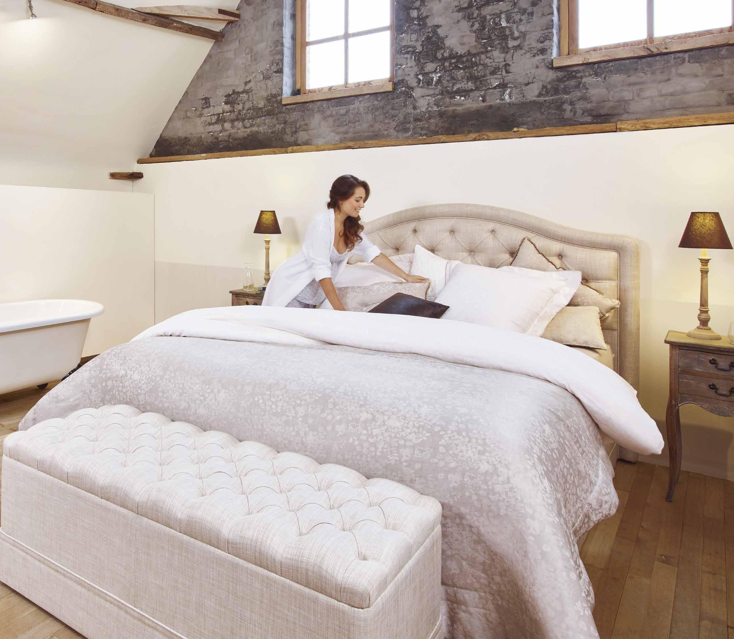 zijdezachte beddengoed van Frette vlijen of ontspannen op het speciale bed, dat de contouren van je lichaam aanneemt.