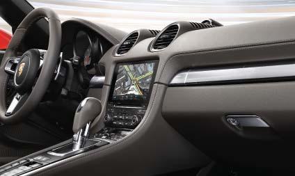 als passagier kunnen dat scherm afzonderlijk configureren. Het PCM omvat uiteraard elementen zoals de onlinenavigatie, onlinefuncties van Porsche Connect, smartphone-integratie via Apple CarPlay en een nieuwe spraakbediening die reageert op natuurlijke spreektaal. Het PCM met zijn hoogwaardige hogeresolutiescherm vloeit harmonieus over in het zwarte paneel van de middenconsole, waarin de nieuwe ‘shift-by-wire’-bedieningspook van de PDK geïntegreerd is. Via een nieuw bedieningsvlak met aanraakgevoelige toetsen in diezelfde middenconsole kunnen tal van functies bediend worden. Zelfs de lamellen van het centrale ventilatierooster kunnen via aanraakgevoelige ‘slider’-toetsen elektrisch versteld worden. In combinatie met de optionele klimaatregeling met vier zones beschikken ook de