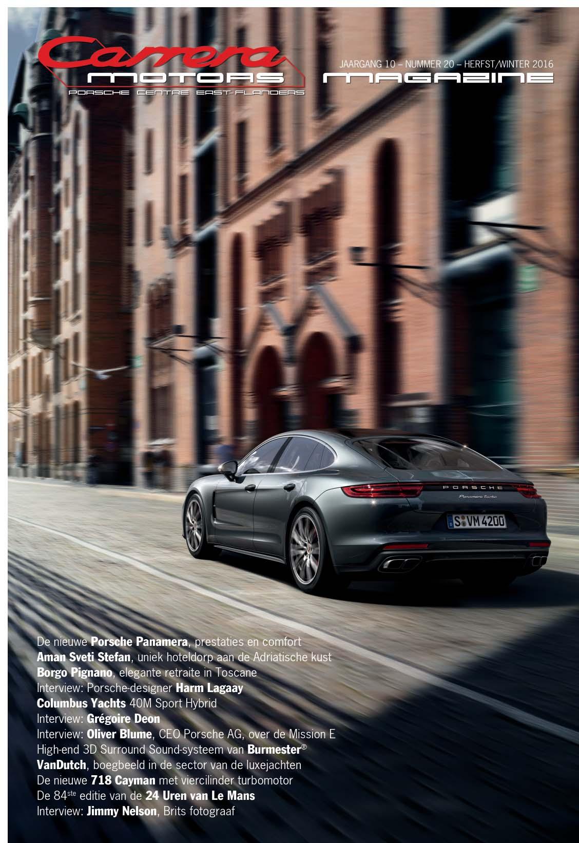 Niets uit deze uitgave mag worden verveelvoudigd en/of openbaar gemaakt door middel van druk, fotokopie, elektronisch of op welke wijze dan ook, zonder voorafgaande schriftelijke toestemming van de uitgever. Aan de samenstelling van deze uitgave werd de uiterste zorg besteed, desondanks kan niet worden ingestaan voor de feitelijke juistheid of volledigheid van de opgenomen gegevens. In geen geval kan er een juridische basis worden aan ontleend. De redactie en uitgever aanvaarden geen aansprakelijkheid voor de volstrekte juistheid en volledigheid van gegevens van de in deze uitgave opgenomen teksten. ©2006-2016 Carrera Motors Porsche Magazine.