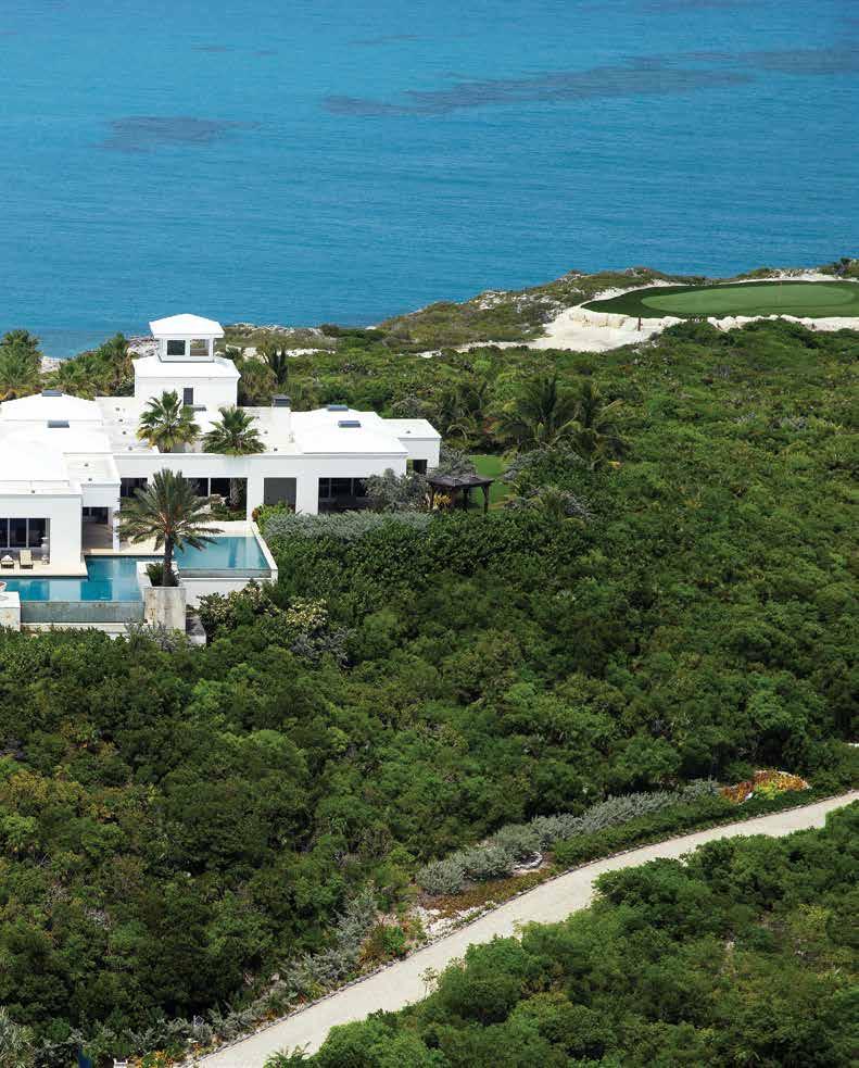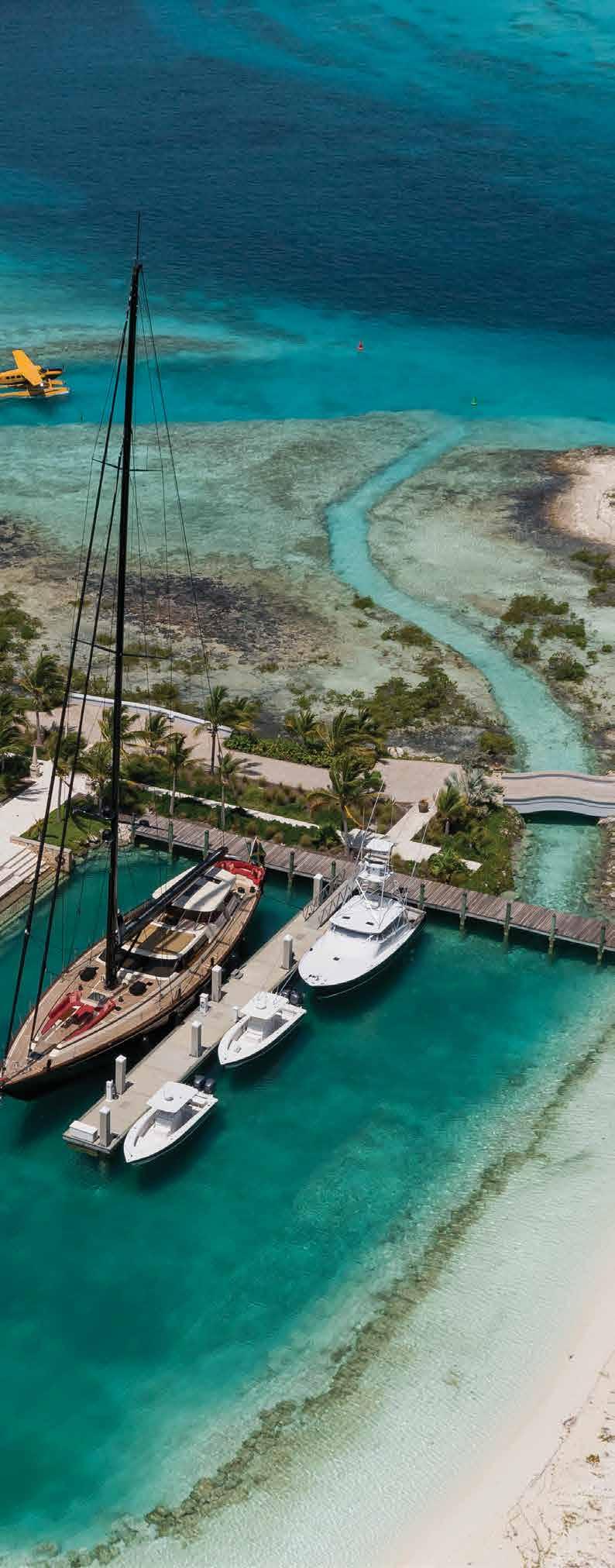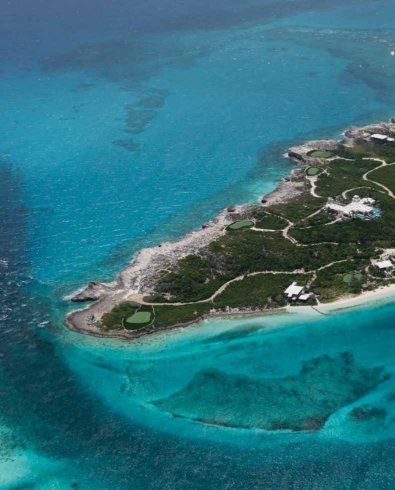 32 Over Yonder Cay, op het eiland Exuma, is een perfect voorbeeld van de symbiose tussen natuur en architectuur, waar voetsporen aan het strand de uitzondering zijn.