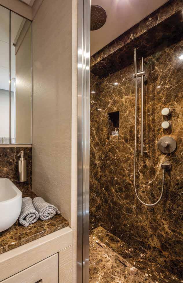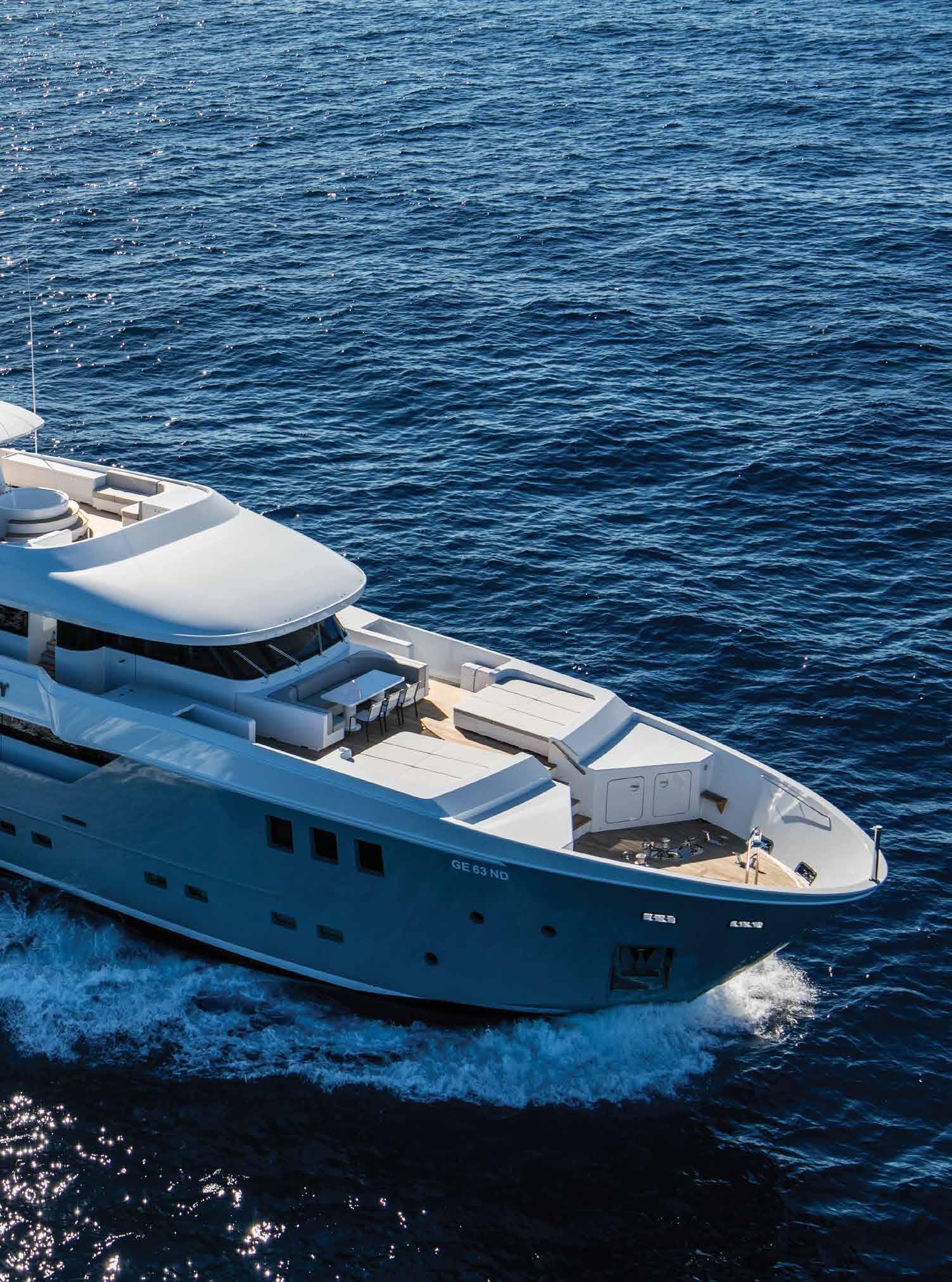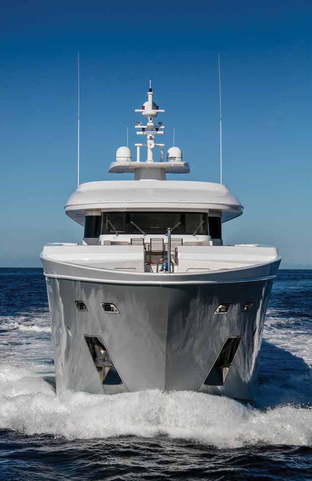 48. Met haar kleurenschema van witte en grijze Awlgrip-lak oefent