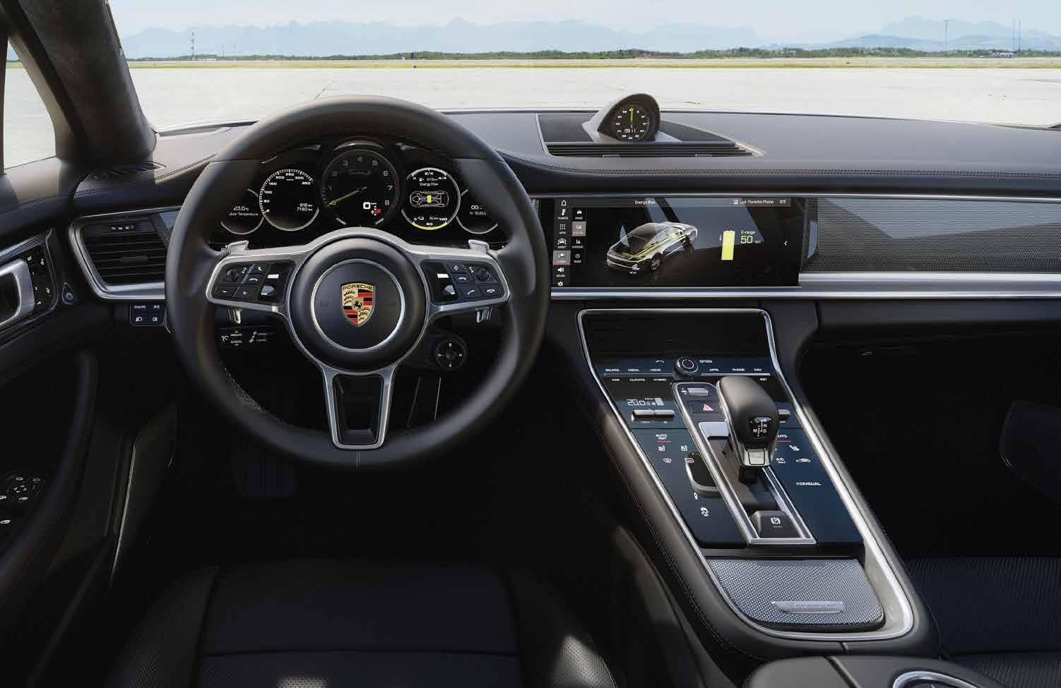 De nieuwe Panamera 4 E-Hybrid maakt gebruik van een compleet nieuw display- en bedieningsconcept: de Porsche Advanced Cockpit met aanrakingsgevoelige panelen en individueel instelbare displays. Twee 7-inch uitvoeringen aan weerszijden van de analoge toerenteller vormen de interactieve cockpit. In tegenstelling tot de andere modellen heeft de Panamera 4 E-Hybrid een power-meter die het functioneren van het hybridesysteem zichtbaar maakt, zoals de hoeveelheid actueel gebruikte elektrische energie en de