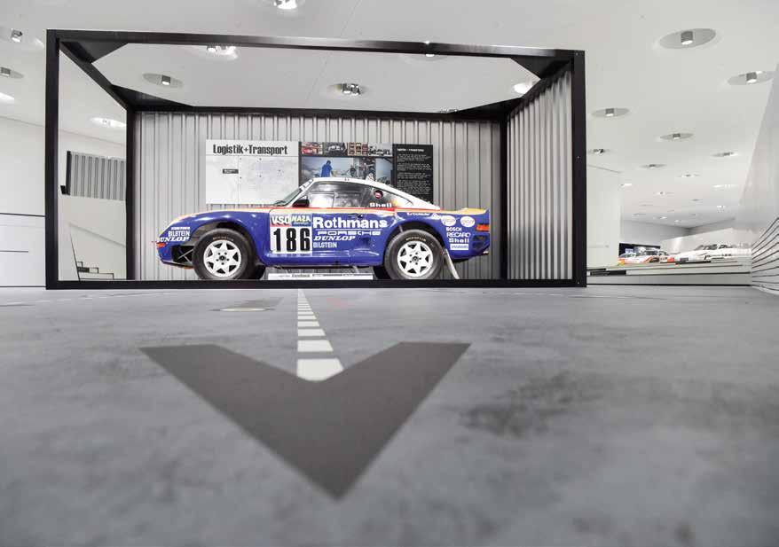 over de logistiek te land, ter zee en in de lucht en over de manier waarop ze worden voorbereid op shows en evenementen. Een goed voorbeeld is de 911 ‘Around the World’ uit 1966. Deze auto werd in 2013, toen de 911 zijn vijftigste verjaardag vierde, bij vele wereldberoemde bezienswaardigheden gefotografeerd. Ook de 911 Carrera RSR die de Targa Florio reed, de 911 SC die bij de Top City China Rally werd ingezet en de 356A Speedster die deelnam aan de Mille California vertellen elk een bijzonder verhaal.