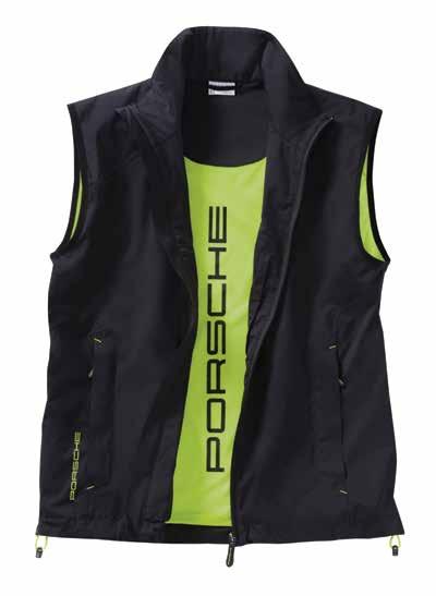 Softshell vest zonder mouwen in zwart voor heren/ weerbestendig en ademend/waterproof/kleine Porsche print op de rugzijde en grote Porsche print in de binnenzijde.