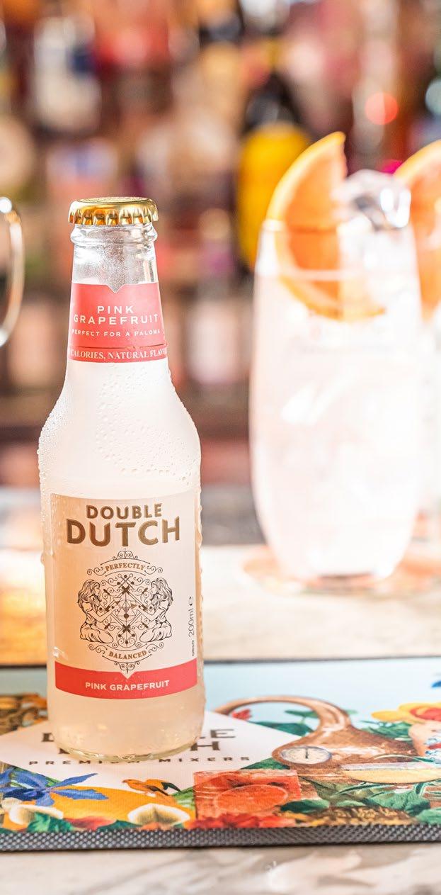 Double Dutch is de enige B-Corp geaccrediteerde mixer op de markt. De zussen gingen van bij het begin resoluut voor natuurlijke smaken en maakten stap voor stap steeds duurzamere product- en verpakkingskeuzes. Sinds 2021 hebben ze het plasticgebruik met 30% verminderd en werken ze samen met bedrijven als Too Good To Go en Fareshare om voedselverspilling te verminderen. In 2022 compenseerde Double Dutch in het Verenigd Koninkrijk meer dan 140.000 kilo CO2 door bomen te planten in Somerset, waardoor het merk nu 100% CO2neutraal is. Daarnaast worden de Double Dutch glazen flessen gemaakt van 20% gerecycled glas, en lanceerden ze een lijn volledig recycleerbare aluminium blikjes. “Duurzaamheid ligt ons na aan het hart omdat we een katalysator willen zijn voor positieve verandering binnen onze branche,” deelt Raissa. GASTRONOMIE
