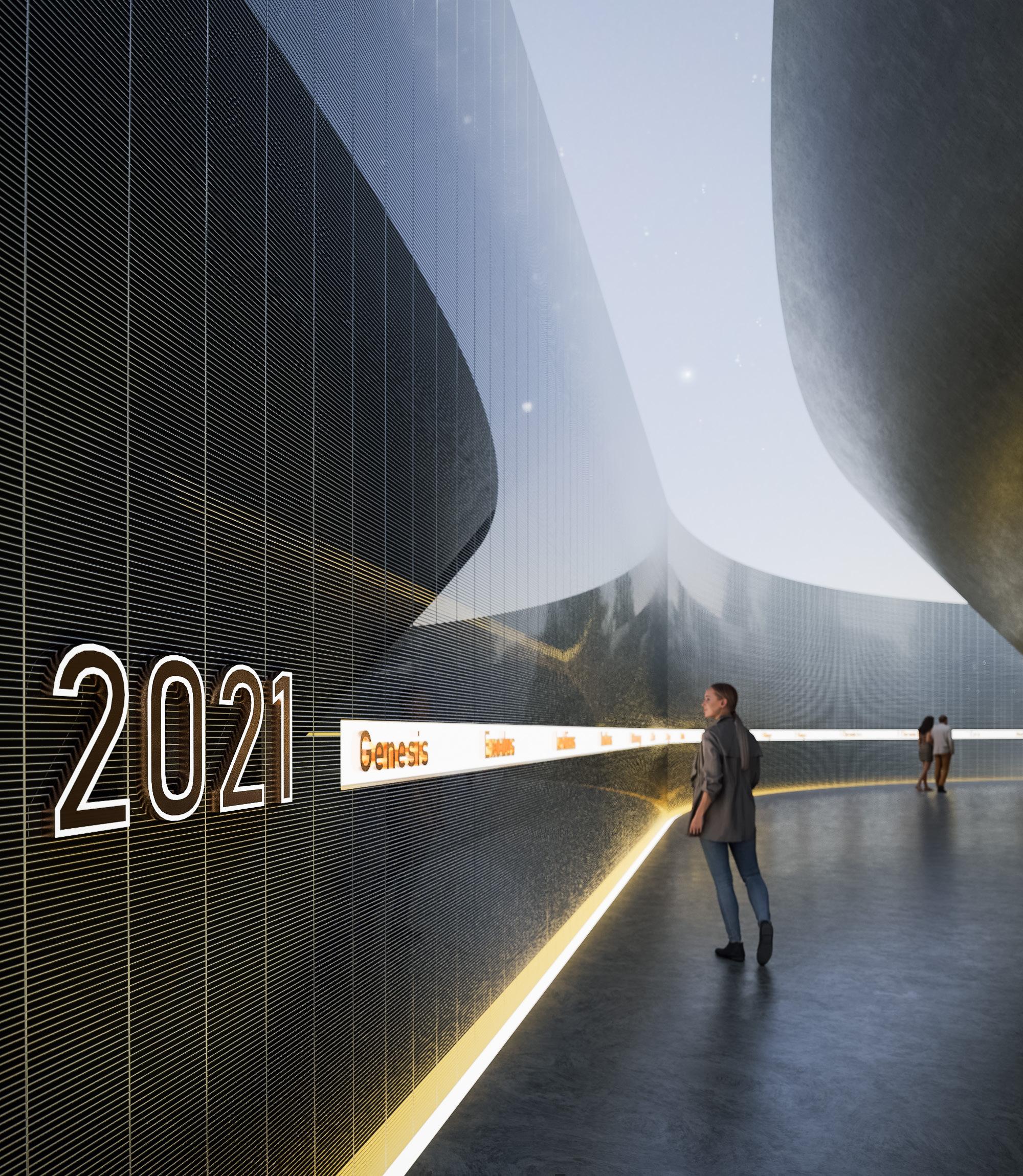 The "First met" is a large atrium, and open space is the heart of the building. It is enclosed by a glass roof, which allows natural light to flood in. The walls are lined with strip lights, creating a lush and inviting atmosphere.