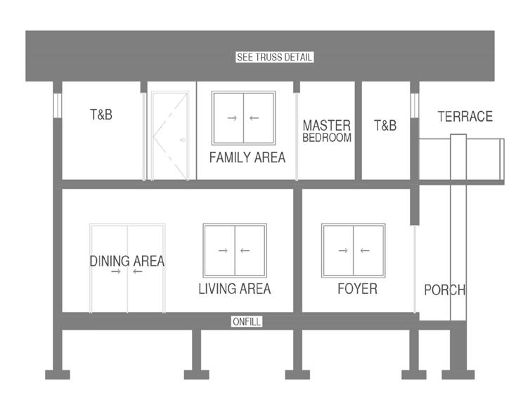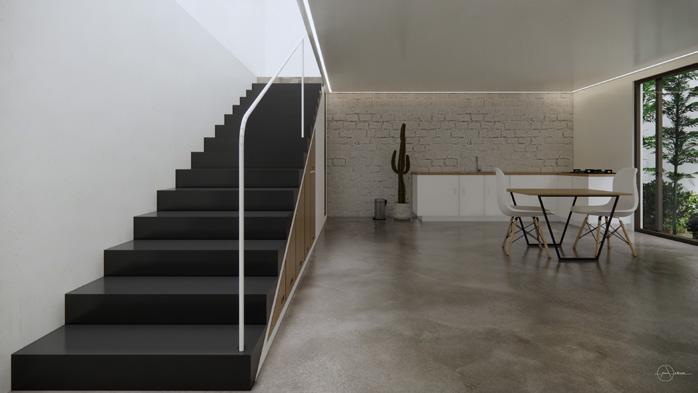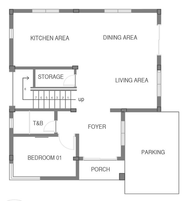 The DOS House is a modern and minimalist 2-storey residential house that is designed to be both stylish and functional. The ground floor features an open-plan living, dining, and kitchen area, with well planned windows that air and natural light comes in. There is also a bedroom and bathroom on the ground floor, which could be used as a guest bedroom or home office.