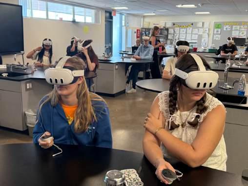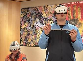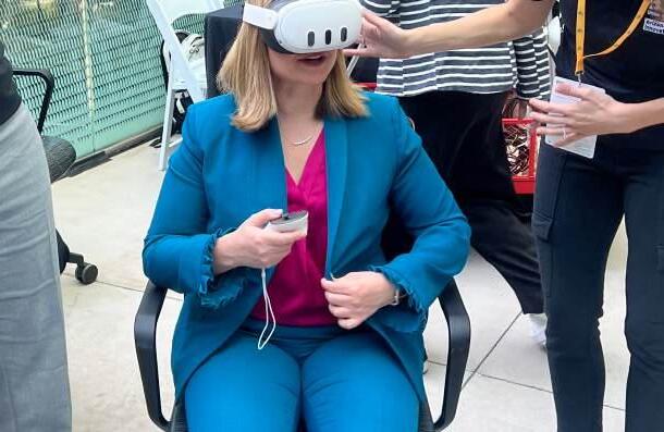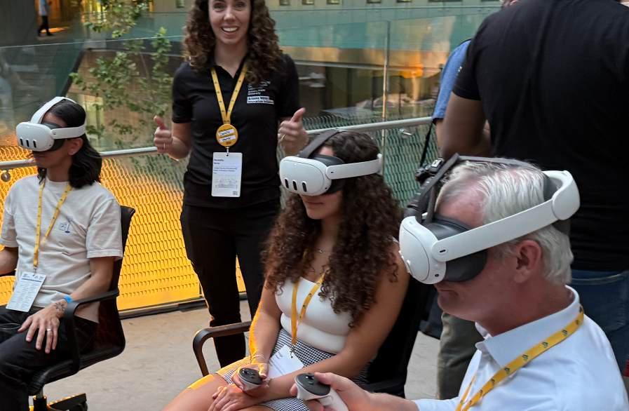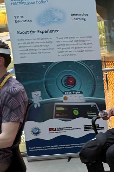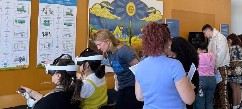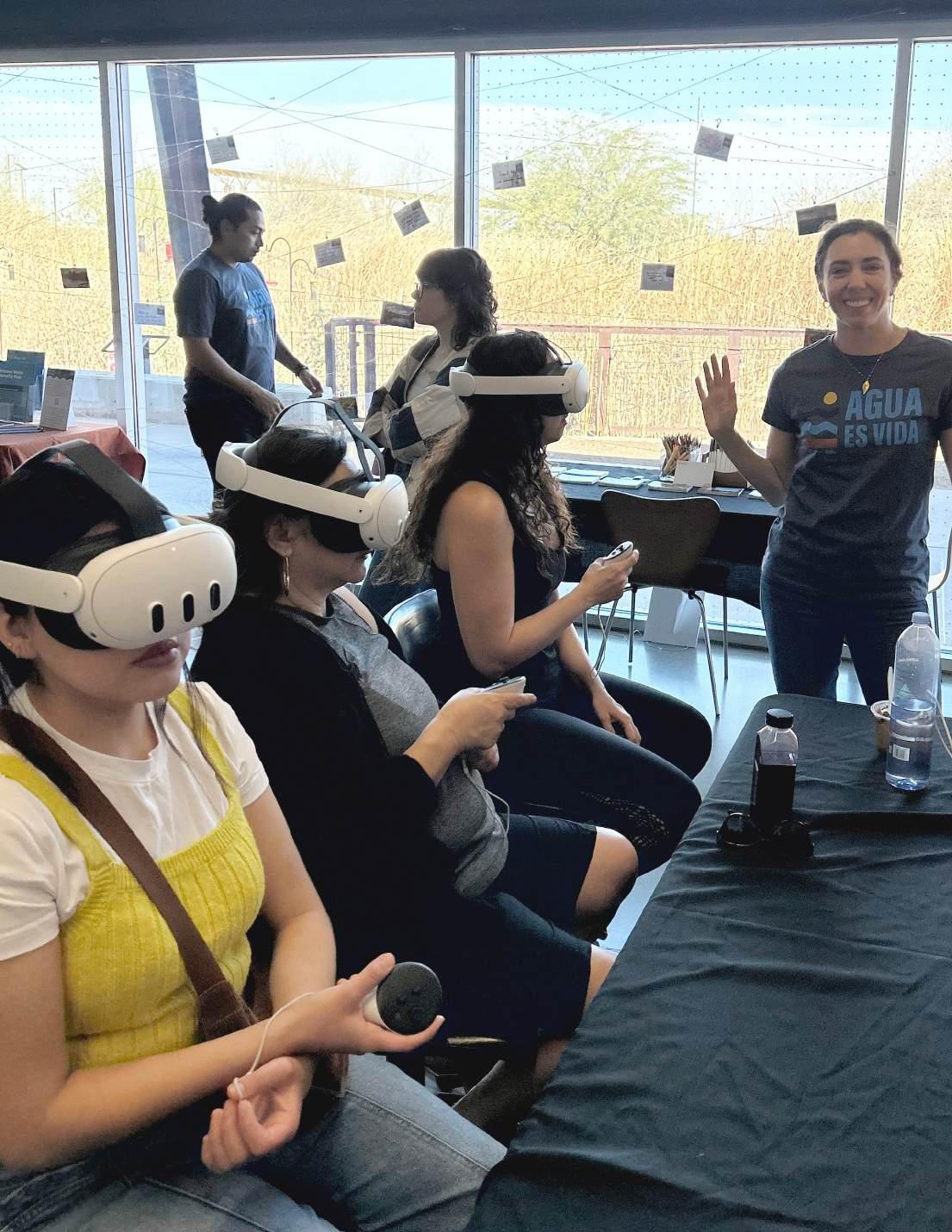 Visitors to the Arizona Water Innovation opening event experiencing water in varied ways including through virtual reality.