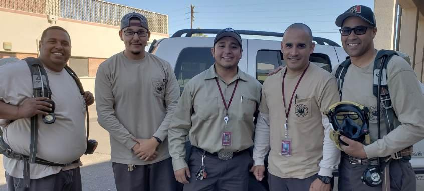 A crew from Phoenix Water Services tasked with preventative maintenance on the gaseous chlorine system. Photo by Kathryn Sorensen.