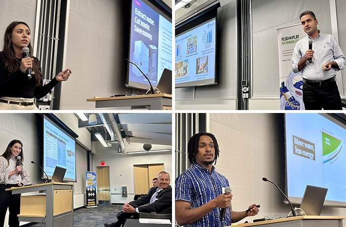 Clockwise from top left: Heba Gibani of Purity ReSource, Alireza Farsad of AmorpH2O, Heather Tugaoen of Watergenics and Haig Rickerby of Harmony Desalting. Photos by Faith Kearns