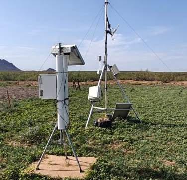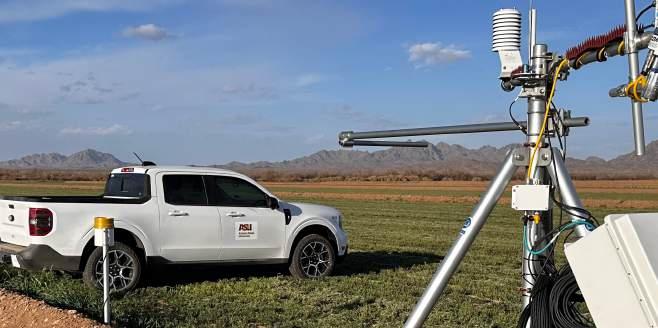 An eddy covariance tower in Gila Bend, Arizona. Photo by Efrain Vizuete.