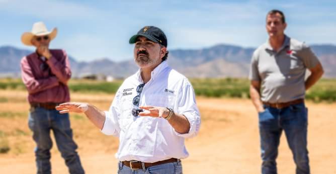 For example, the Center for Hydrologic Innovations, led by Professor Enrique Vivoni, has partnered with farmers and private industry to demonstrate the water savings realized with an amendment that increases soil health. Southern Arizona chile farmer Ed Curry estimated that the MyLand algae amendment has helped him to reduce his water use by 10% for his chiles and pecans. Other
