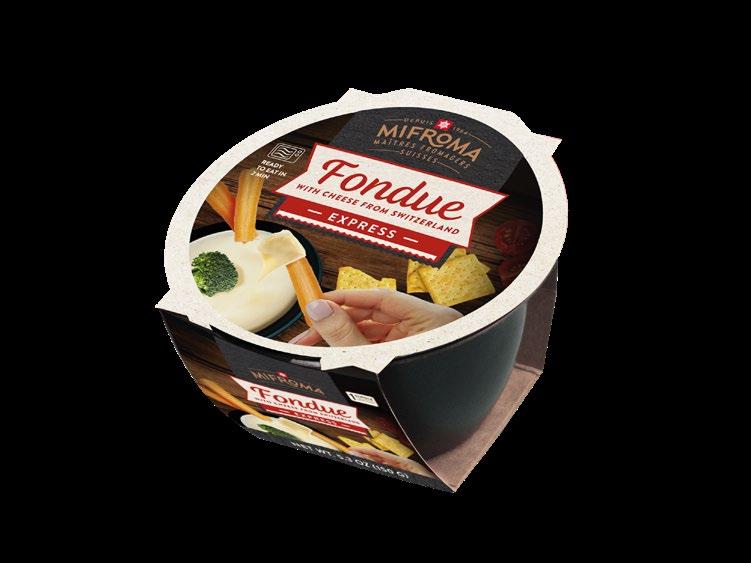 These ready-to-eat fondue delights blend authentic Swiss cheese, including Emmentaler AOP and Gruyère AOP. The resulting creamy cheese has a balanced earthy flavor and sweetness that make it a perfect melting cheese to pair with potatoes, meat and winter root vegetables.