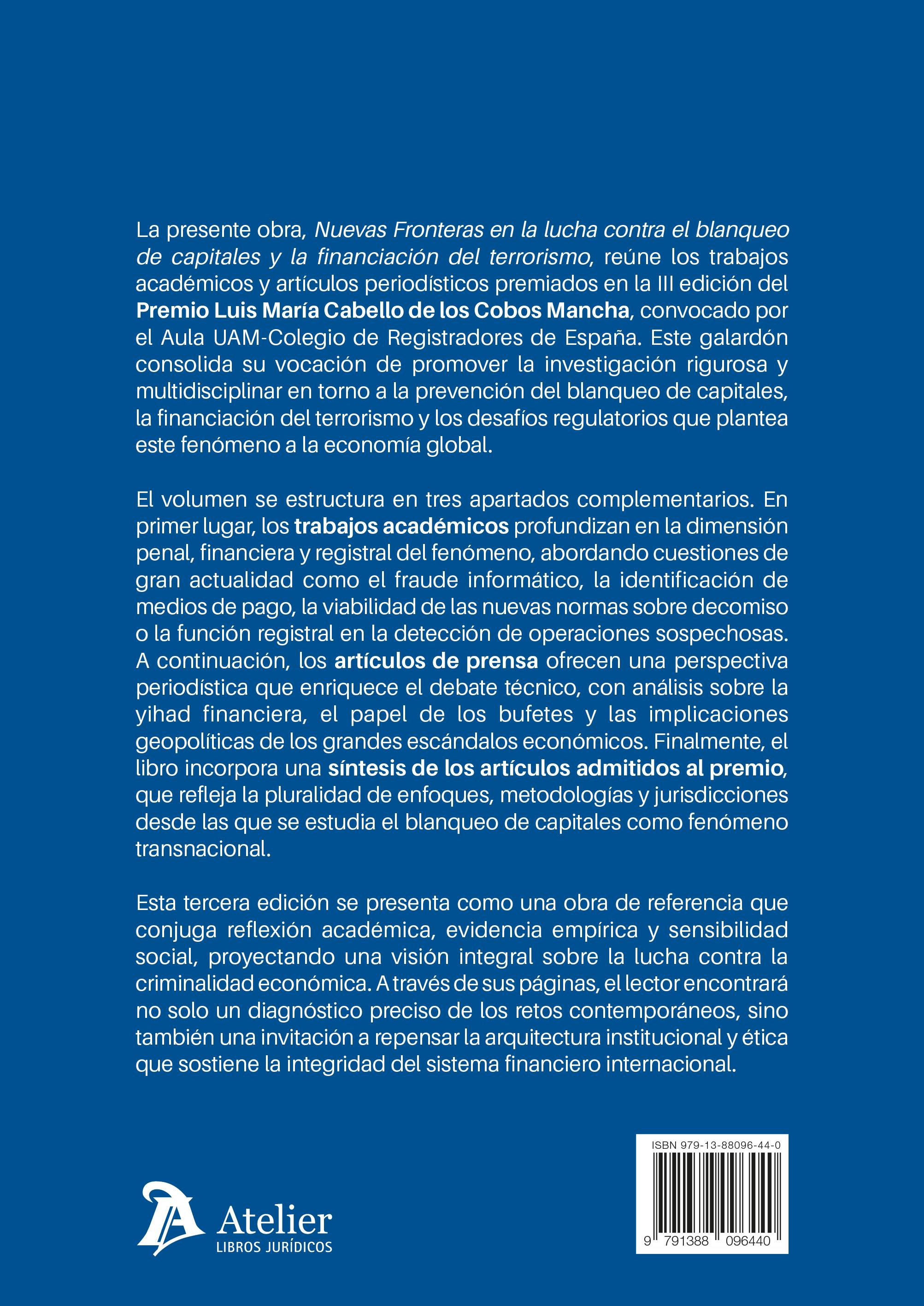 Premio l uis M aria C abello de los C obos M an C ha del Aula UAM-Colegio de Registradores para la prevención en blanqueo de capitales y financiacion del terrorismo.