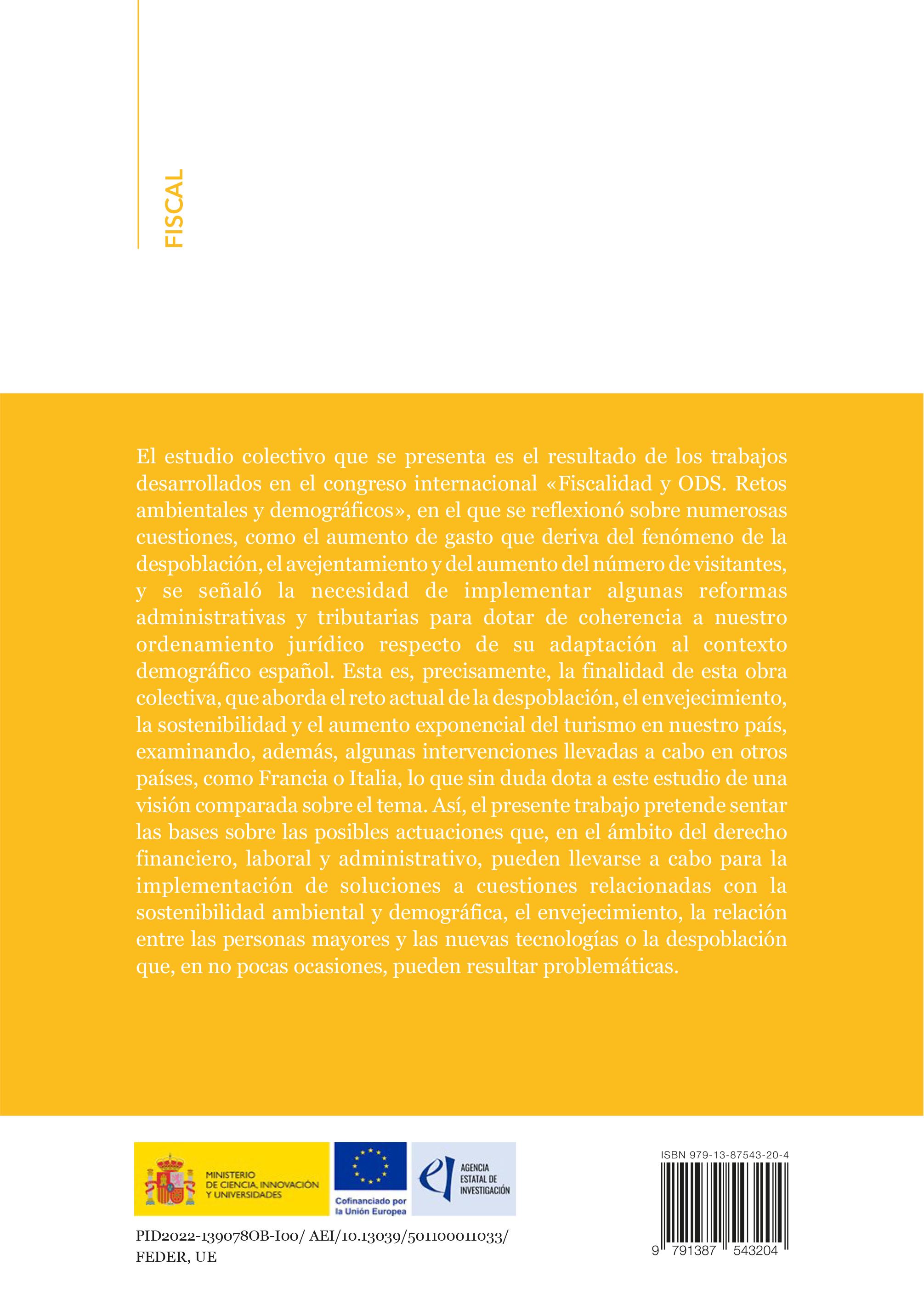 La investigación en Ciencias Jurídicas, tal como la entendemos quienes formamos parte del Proyecto «El derecho financiero y tributario ante el reto demográfico: envejecimiento, despoblación y población flotante» (PID2022-139078OBI00), tiene como principal objetivo contribuir a la solución de los problemas y retos a los que se enfrenta la sociedad. Para ello es imprescindible generar debate, escuchar a quienes desde distintas áreas trabajan en los ámbitos mencionados, reflexionar, escribir, y trasladar a la sociedad los resultados de todo ello. Uno de los instrumentos más efectivos para llevar a cabo esta tarea es la organización de actividades científicas como el Congreso que se encuentra en el origen de esta obra, celebrado en la Universidad de Granada en el mes de octubre de 2024 con el título: «Fiscalidad y ODS. Retos ambientales y demográficos», que tuve el honor de dirigir junto a la profesora María García Caracuel y el profesor Juan José Romero Abolafio, con la inestimable ayuda de María del Mar Soto, José Francisco Sedeño y Juan Antonio García Molina. Aprovecho estas líneas para agradecer además el apoyo del Departamento de Derecho Financiero de la UGR, de la Facultad de Derecho, del Vicerrectorado de Innovación Social, Empleabilidad y Emprendimiento de la UGR y de Caja Rural de Granada. Meses de intenso trabajo dieron como fruto dos jornadas intensas y muy productivas, en las que participaron las personas que figuran en el índice de este libro aportando su conocimiento e ideas. Nuestra satisfacción con los resultados obtenidos nos llevó a continuar el trabajo con la publicación que tiene usted entre sus manos, y que esperamos contribuya tanto a la formulación de políticas públicas como a que la sociedad en general conozca los fundamentos de una cuestión tan importante como el reto demográfico.