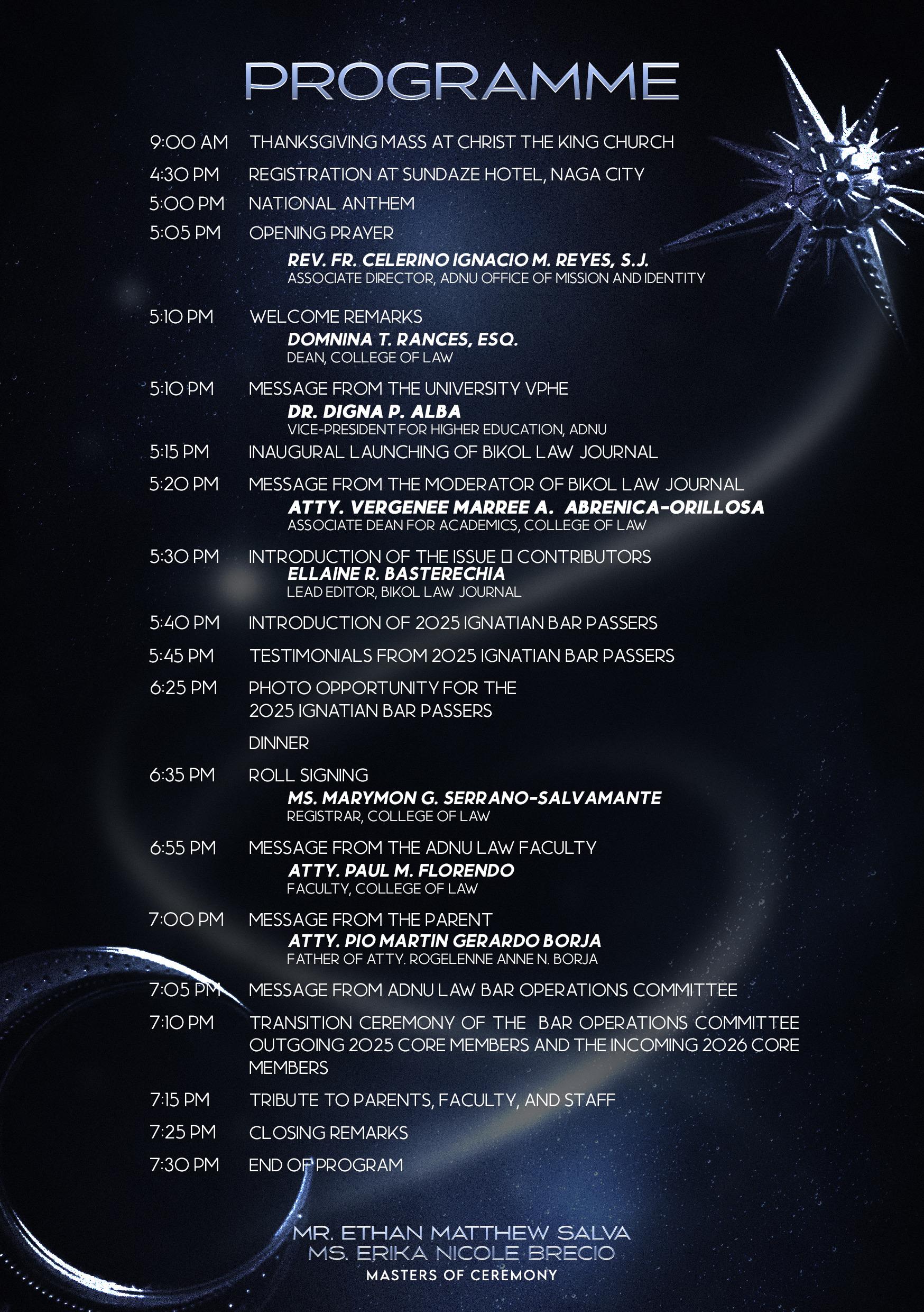 Honorees, Faculty, Staff, and Guests are cordially invited to this momentous event. Kindly wear your fanciest formal attire as we celebrate the triumph of our newly minted Ignatian Lawyers.