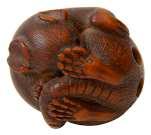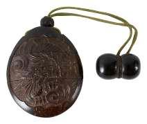 38. A Kashmiri carved hardwood occasional table c.1900 in the manner of Jubbar Khan & Son, Srinagar, in two parts, the outer border relief carved with two entwined scaled dragons each with an animal in their jaws, the raised shaped centre panel on a hatched ground, the folding base with four pierced dragon form supports, height 61cm, width 65cm £200-£300