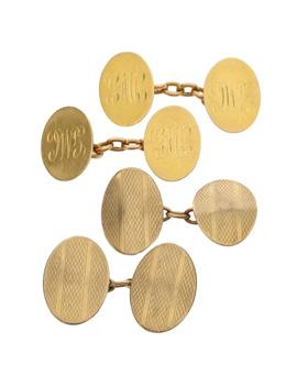 12. A group of four gold propelling pencils all unmarked, with engine-turned and engraved foliate decoration, including three with hardstone steals (4), the largest when extended 11cm, total weight 40g