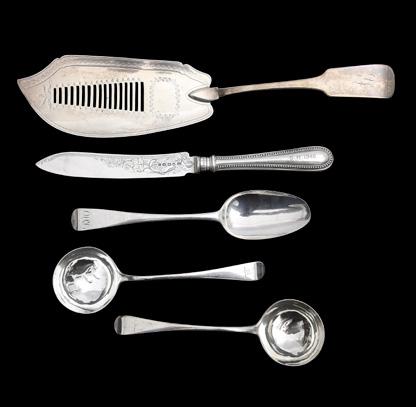 24. A George III silver sifter, a George III ladle, and a Victorian sauceboat the sifter of octagonal form, London 1807, the ladle by Hester Bateman, London 1787, the sauceboat with engraved initials, Chester 1857 (3), total weight 11.35ozt
