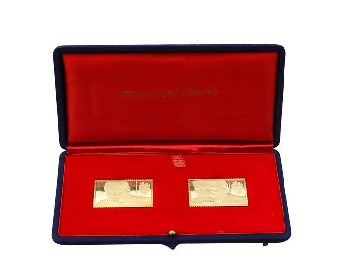 London 1974, of bulbous form, with textured gilt tops, and bayonet stoppers (2), height 5cm, weight 2.16ozt