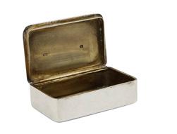 8. A George III silver snuffbox maker W.P, London 1904, of plain rectangular form, width 6cm, depth 4cm, height 2cm, weight 2ozt
