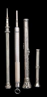 14. A Sampson Mordan silver cocktail stirrer, spoon and straw