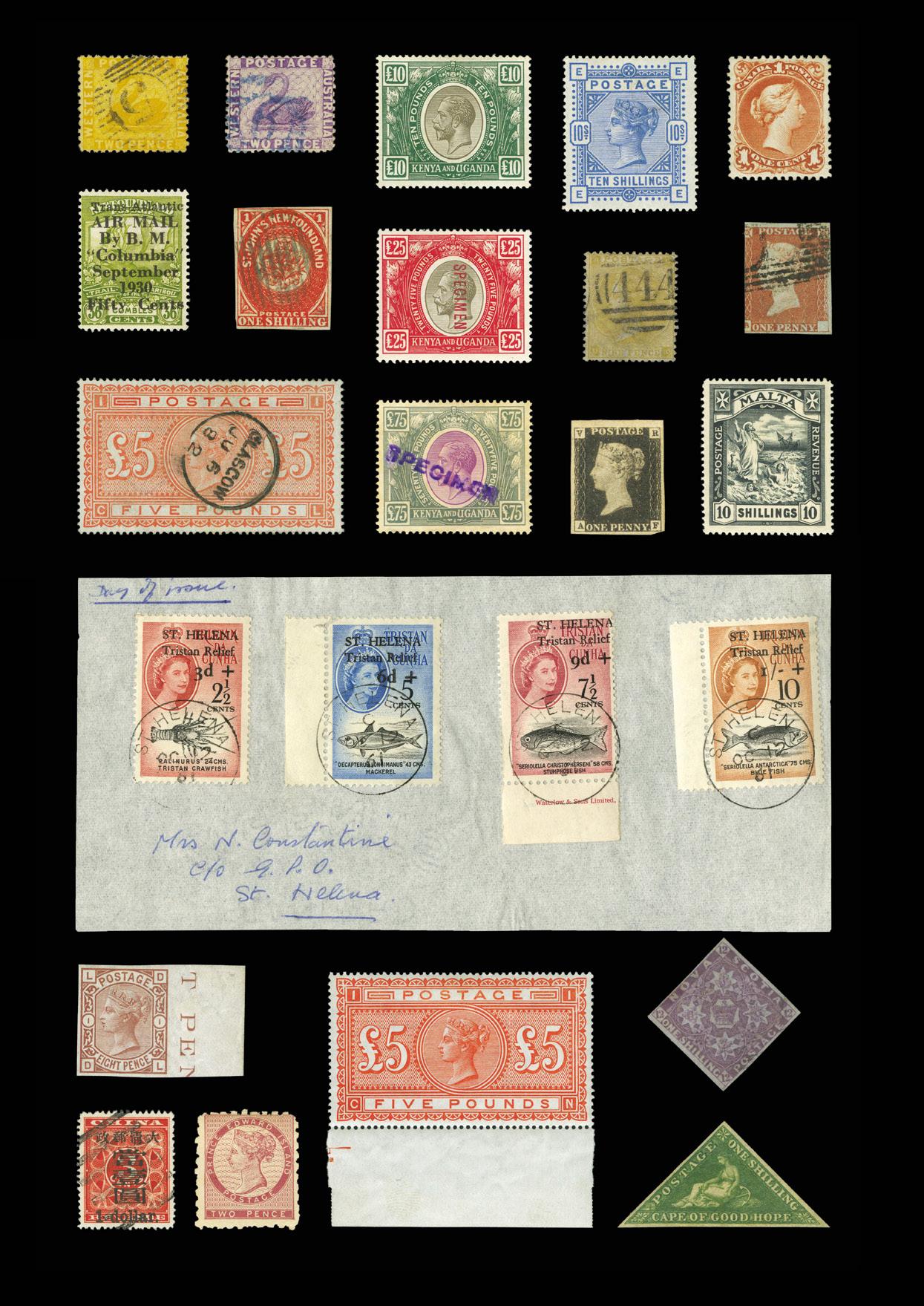 1888-93 on GB set to 1s (good colour), the 2½d value without gum, horizontal crease on 6d, h/r, mint/o.g. (10) Cat. £5550 {MH} £160 20266 12, 16 1888-93 on Natal ½d (with stop) and 1893 6d, h/r, m.m. Cat. £120 {MH} £38