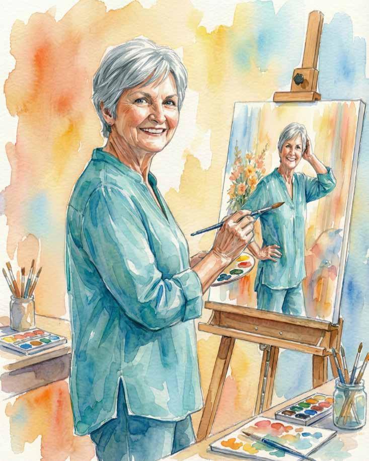 In our Art Buddies group, we’re a vibrant mix of ADU members from across Australia, each contributing individual talents and viewpoints. Our ‘Art Buddies’ team includes Christina Brunton, Denise Cauchi, Ilona Abou-Zolof, Marie Helyar, Marina Hobbs, Robyn McLauchlan and Ngaire Danvers. We gather regularly on Zoom, taking turns to set our creative challenges.