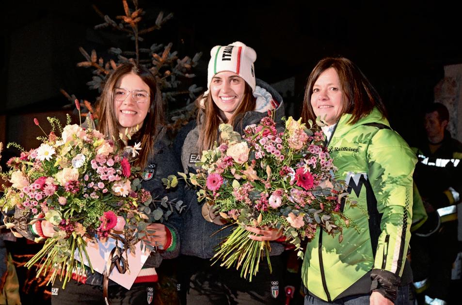 Völsfeiert.Undwie!MitvielJubel,vollemProgrammundreichlichProminenz wurdengesternamAbenddieGoldmedaillen-GewinnerinnenAndreaVötter(Mitte) undMarionOberhofer(links)inderGemeindeuntermSchlern begrüßt.Zu verdienterEhrekamauchIreneMitterstieler(rechts),SektionsleiterinRodelnimASV VölsundersteTrainerinvonAndreaVötter.Foto:DLife Seite39