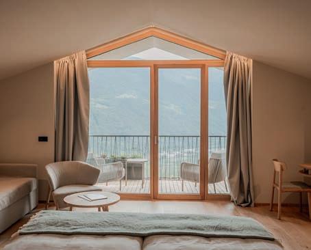 kleine Familien bis zur großzügigen Suite mit separatem Wohnbereich – verbindet sich natürliche Wärme mit offener Weite. Ganz besonders ruhig und exklusiv: die Dachsuite, ein Rückzugsort mit Whirlpool, klaren Linien und atemberaubender Aussicht.