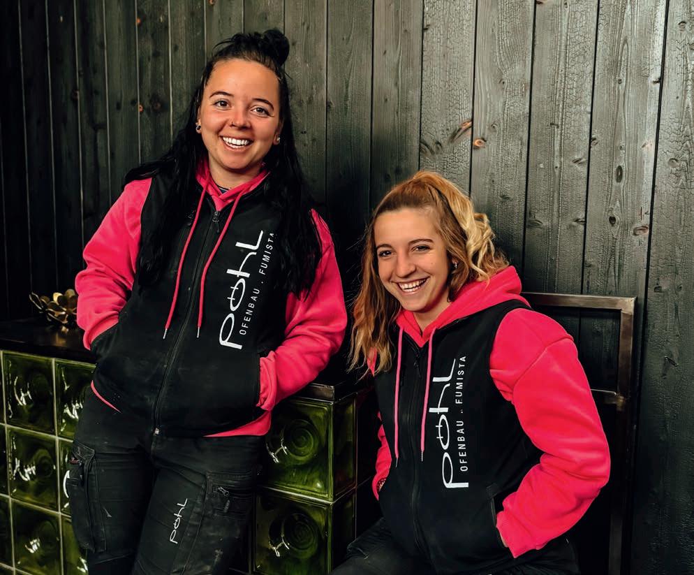 Viele Leute halten sie für Zwillinge. Eine blond, eine schwarz, das ähnliche Lachen und denselben Beruf. Hafnerin. Hafnerin? Ja, Ofenbauerinnen. Jasmin und Jelena Pöhl haben den Kachelofen sozusagen im Blut. Großvater Toni hat die Firma am Ritten aufgebaut, Vater Andreas hat sie übernommen, er ist der Kopf hinter den Öfen, Jasmin und Jelena und zwei weitere Mitarbeiter bauen sie. „Wir haben den absoluten Traumberuf“, sind sie sich sicher und nennen sich stolz Ofensetzer.gitschn.