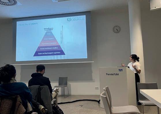 Noemi bei einem Workshop der von ihr mitbegründeten Initiative „SMJ – Student Medical Journal“, bei welchem sie erklärt, wie man wissenschaftliche Paper richtig liest –ein Projekt, das Studierenden den Zugang zur Wissenschaft erleichtern soll.
