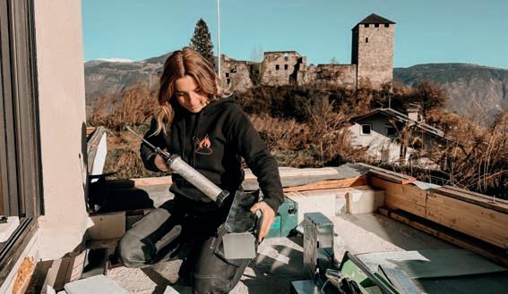 nach Hause, wenn der Ofen nachträglich eingebaut wird und der Kunde oder die anderen Arbeiter am Bau auf den Vorarbeiter warten. „Aber da können sie lange warten, wir sind ja schon da! Am zweiten Tag sind dann aber alle begeistert. Und meistens heißt es, ihr arbeitet nicht nur sehr gut, sondern auch sauberer als die Mander.“ Sie grinsen sich an. Das Schwierigste beim Arbeiten? „Den Daddy zum Boss haben.“ Und Spaß beiseite: „Das Ausmessen und Hineinprojizieren.“ Es ist immer wieder spannend, wie der fertige Ofen dann aussieht. Schließlich ist keiner wie der andere. Jeder ist eigens für den Kunden entworfen. Und wenn er dann fertig ist, das erste Feuer drin brennt und die Augen der Kunden mit den Flammen um die Wette leuchten, das ist der schönste Moment. Der Arbeitstag ist lang. Von sieben bis 17.30 Uhr, wenn nicht noch eine lange Anfahrt einzuplanen ist. Die Kunden sitzen nicht nur in ganz Südtirol, sondern auch am Gardasee, in Österreich oder Deutschland, in Kroatien. Einen Ofen haben sie auf Elba gebaut. Das gefällt ihnen auch an ihrer Arbeit. Viel herumkommen und immer neue Leute kennenlernen. Die Dauer der Bauzeit beträgt je nach Größe und Material eineinhalb bis zwei Wochen. Im Schnitt bauen sie 70 Öfen pro Jahr. Ins Fitnessstudio müssen die beiden nach der Arbeit nicht mehr gehen. „Muskeln haben wir genug durch die Arbeit!“ Aber sie sind beide sehr sportlich. Jelena spielt Volleyball, Jasmin erstaunt auch bei der Wahl der Sportarten. Neben Klettern spielt sie für ihr Leben gerne Fußball und hat mit