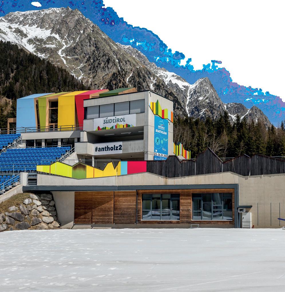 nachhaltige Holzarchitektur. Leitner hat übrigens ebenso wie der österreichische Konkurrent Doppelmayr aufgrund schwerwiegender geologischer Probleme auf den Auftrag für den Bau neuer Aufstiegsanlagen in Cortina verzichtet. Der Werbeeffekt von Olympia wird viele Jahre anhalten. Im Rahmen von Olympia ist Südtirol weltweit in den Medien vertreten, Südtiroler Produkte können sich mit dem Logo Mailand-Cortina 2026 schmücken. Olympiasponsoring, das hat Turin 2006 gezeigt, ist mindestens 3,6-mal wirksamer als herkömmliche Werbemaßnahmen. Südtirol kann dabei auf mehreren Ebenen punkten: mit seiner einzigartigen Landschaft, den erstklassigen Wintersport- und Tourismusanlagen, aber auch mit seiner technologischen Kompetenz, seinen Produkten und nicht zuletzt als ökologische Kompetenzregion. Für ein Land, das sich gerne über Qualität und Nachhaltigkeit definiert, ist Olympia 2026 eine einmalige Chance globaler Sichtbarkeit.