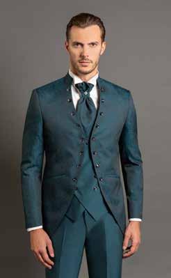 Dreiteiler ist wieder gefragt und eröffnet vielfältige Möglichkeiten, Persönlichkeit und Stil zu zeigen. Nadelstreifen-, Hahnentritt-, Karo- oder Paisley-Muster machen die schmalen Schnitte lebendiger und erinnern an vergangene Zeiten. Wer hingegen Wert auf dezente Individualität legt, veredelt sein Hochzeitsoutfit durch ein personalisiertes Innenfutter, das der Kleidung einen hohen Wiedererkennungswert schenkt.