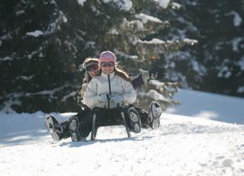 den Winterwald und z.B. zur Lyfialm oder zur Marteller Hütte. Wer es gern lustig und schwungvoll hat, kann eine Rodel ins Martelltal mitbringen: Von der Lyfialm und vom Hölderle führen Rodelbahnen ins Tal.