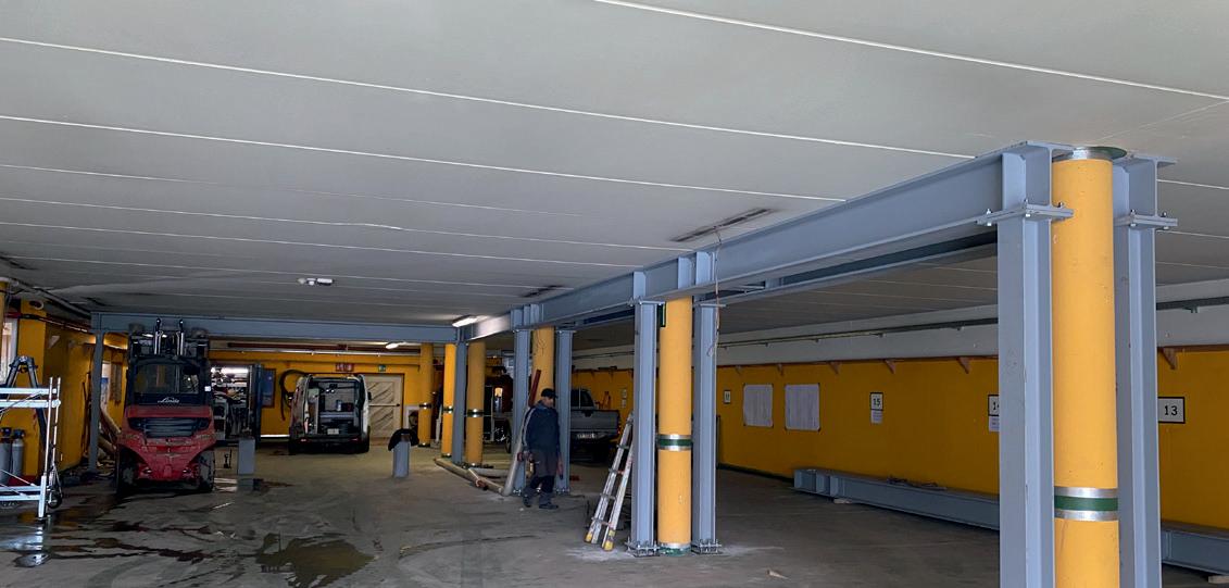 Schlosserarbeiten – Ausführung des Vordaches und der Stahlstützen im Gebäude