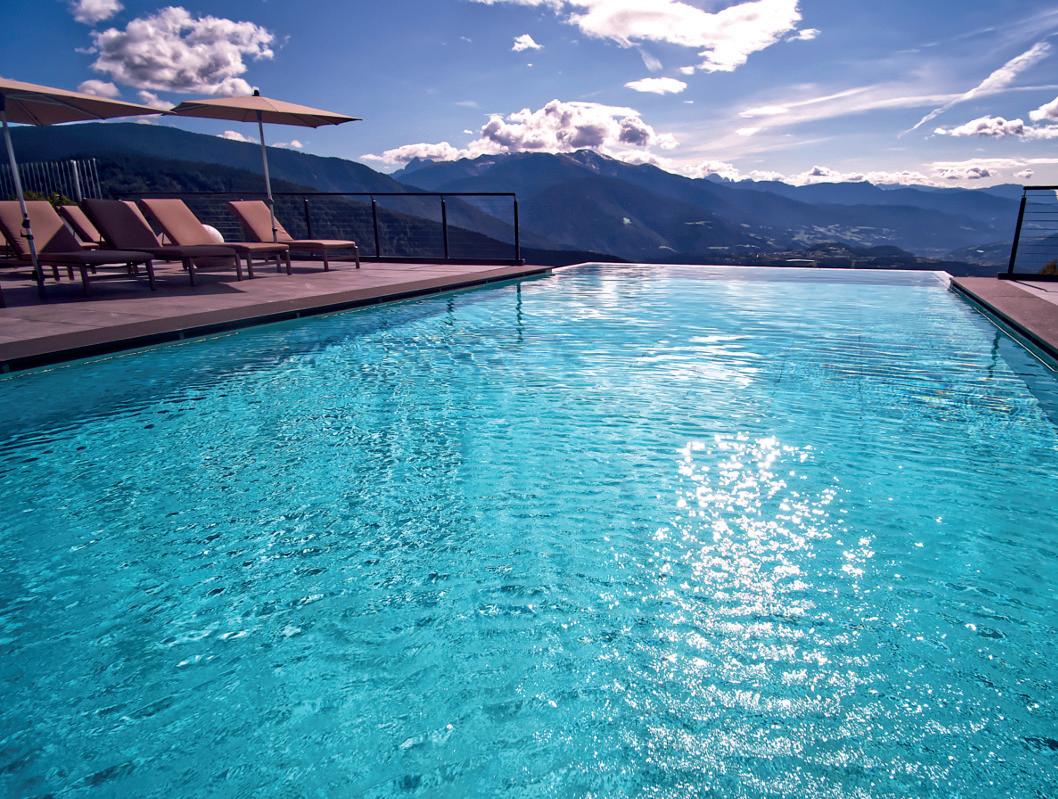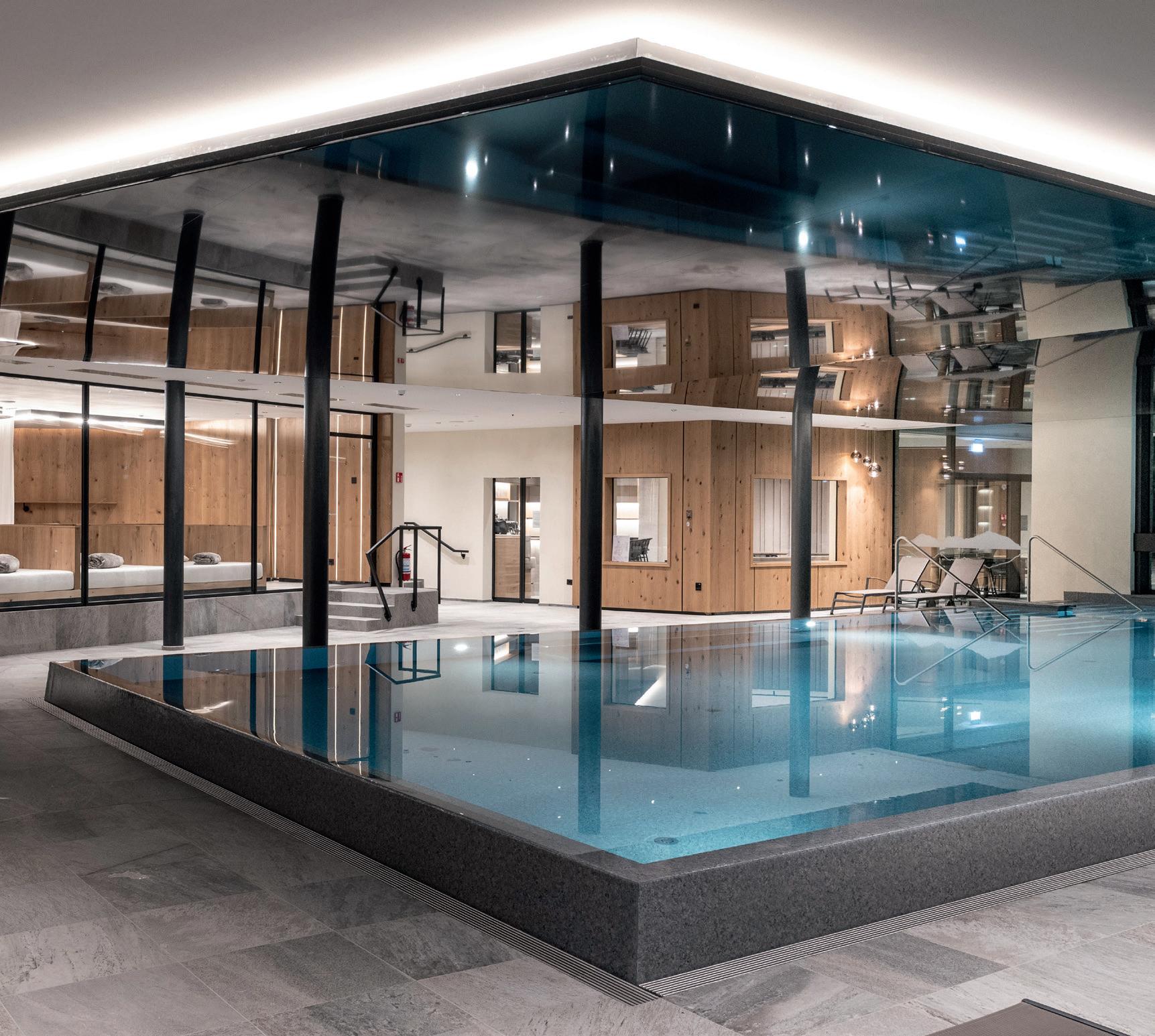 Wellness, Wasser, Weite Ein zentrales Element des neuen Hauses ist das Ortles Spa³. Auf insgesamt 4200 Quadratmetern vereint es Wellness, Garten und Naturbadeteich zu ei nem stimmigen Gesamterlebnis.