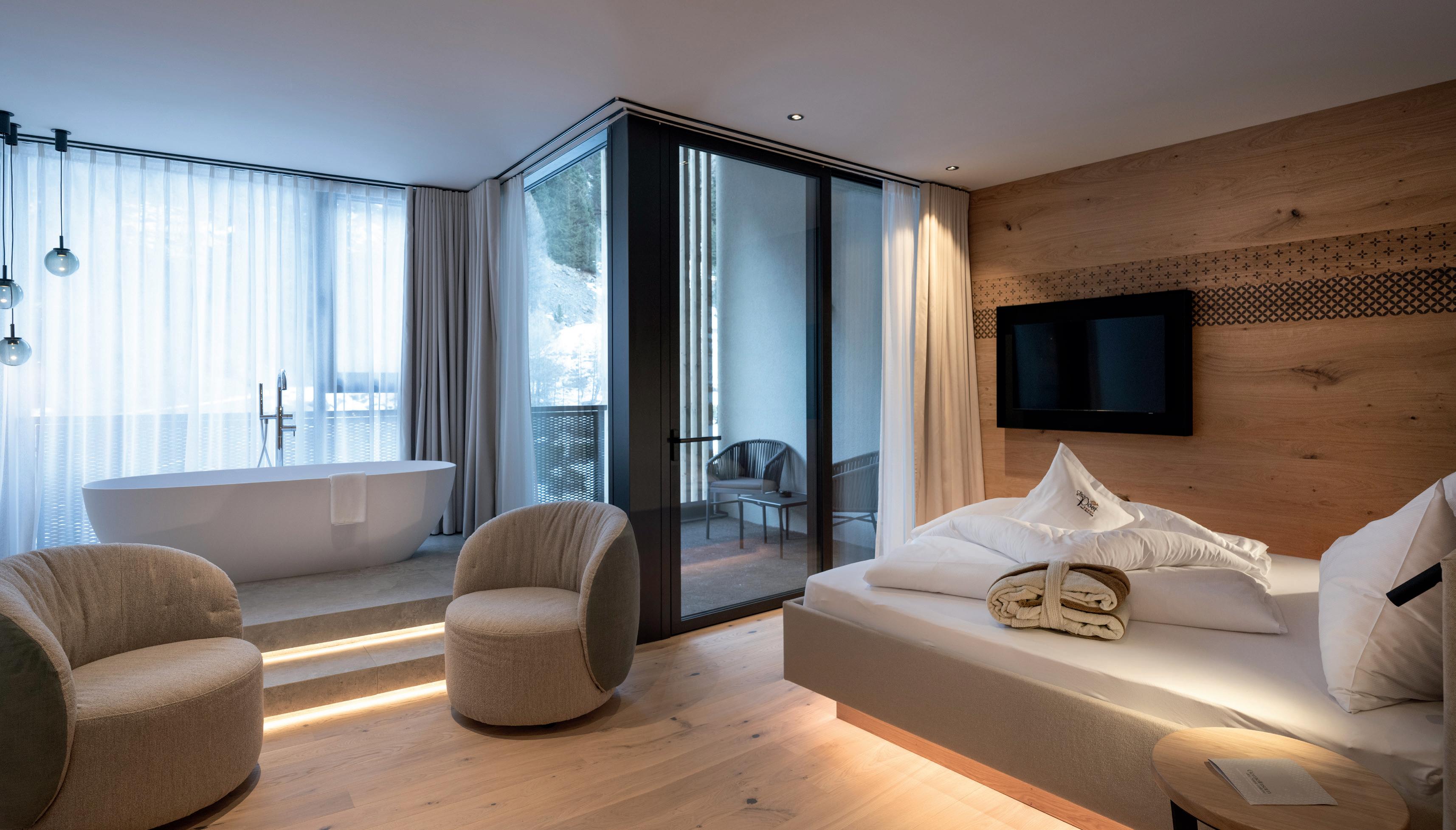 Heute verfügt das Hotel über ins gesamt 73 Zimmer und Suiten, darunter 20 neue Luxussuiten. Sie zeichnen sich durch Großzügigkeit, hochwertige Materialien und viel Privatsphäre aus – teils mit privater Sauna oder Whirlpool. Doch Luxus wird hier nicht als Inszenierung verstanden, sondern als Raum: Raum zum Durchatmen, zum Ankommen, zum Bleiben.