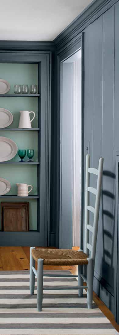 A muted blue-green-gray that can instantly anchor a room, coastal but not overtly turquoise. Calm and tasteful yet anything but boring.