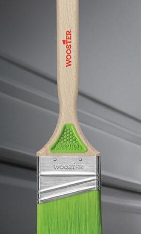 Wooster® GripTech™ features a rubberized grip built into each side of the handle for increased comfort and control. Designed for enhanced ergonomics, GripTech™ provides reduced slip during prolonged use. Its firm polyester filament blend is formulated to deliver excellent cut-in ability and smooth finishes in all paints. Available only from Wooster®
