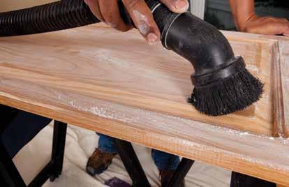 A flat painting surface is the key to refinishing kitchen cabinets. Remove all drawers and doors, and don’t forget to remove any hardware. Then find an area that gives you enough room to work—and enough space to let everything dry for extended periods of time.