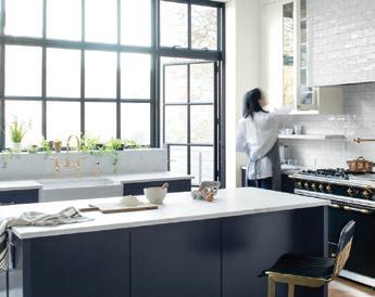 For a quick and satisfying update, infuse your kitchen with accessories that capture the spirit of the season. Swapping out towels, canisters, items on display, and countertop accoutrements can easily and affordably change the mood. Arranging flowers, branches, greens, or fresh, in-season produce provides an of-the-moment ambiance. Adding candles with fresh spring floral scents or winter scents like pine or cinnamon helps to envelop the senses beyond the visual.
