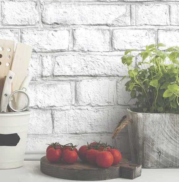 Nothing says timeless style and nostalgic appeal like the distressed glamour of old-timey brick. Have your cake and eat it too with an easy care smooth and durable installation void of rough texture and problematic pits and pores. A whitewashed finish highlights potted herbs, farm fresh produce and well-loved cookbooks while evoking the sense there’s a potager garden just outside the kitchen.