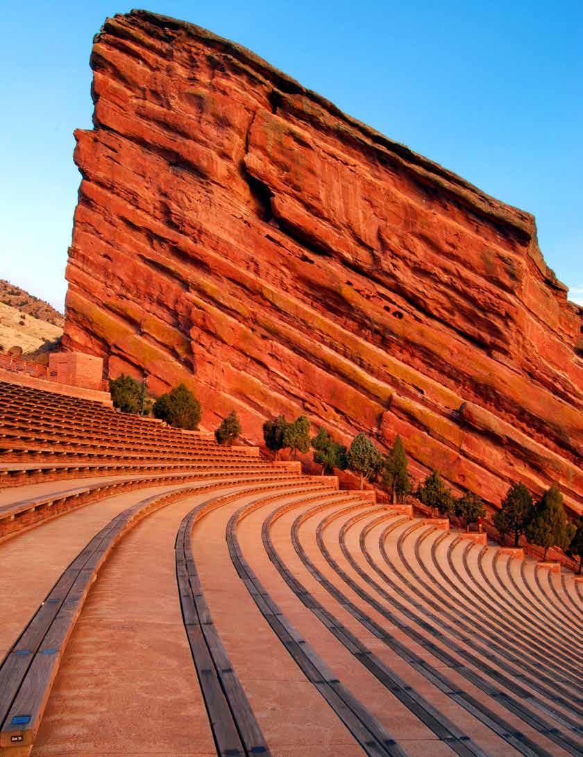 Music fans won’t want to miss Red Rocks Park, where an openair amphitheater now sits grandly in the natural historic landmark. Through the decades, concertgoers have had the chance to groove to some of the world’s biggest musical acts, the all-natural acoustics delighting ears while the red sandstone acts as a stunning backdrop. Take a walk down the Trading Post Trail, a 1.4-mile journey through the giant rock formations.