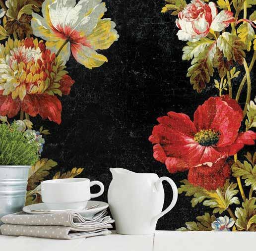 With a black background and myriad lush and leafy accent colours to choose from Funky Jungle provides ample opportunity to flex your stylish accent muscles. Pick a color, any color (or two) and go wild with beautiful ceramics, fresh tropical fruits, and wonderful wood grains. York